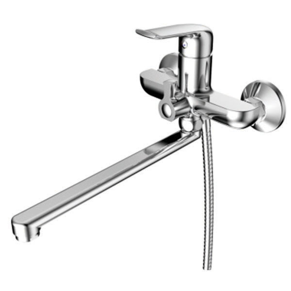 Корпус змішувача – міцна латунь з хромованим покриттям, яке не боїться вологи і добре виглядає навіть через роки. У комплекті є душовий шланг і масажна лійка з трьома режимами подачі води.