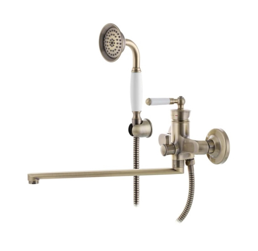 Змішувач для ванної кімнати Mixxus Premium Vintage 006 euro Bronze. Корпус змішувача складається повністю з латуні, ця серія змішувачів виконана у стилі ретро у бронзовому кольорі. Змішувач для ванни комплектується шлангом, душовою лійкою в ретро стилістиці, декораторами та ексцентриками для підключення змішувача до води. Усі комплектуючі виконані у бронзовому кольорі. Гарантія на корпус змішувача 5 років від заводу-виробника.